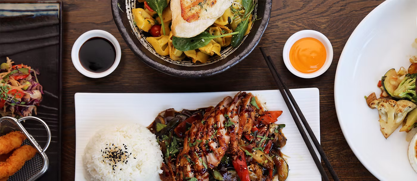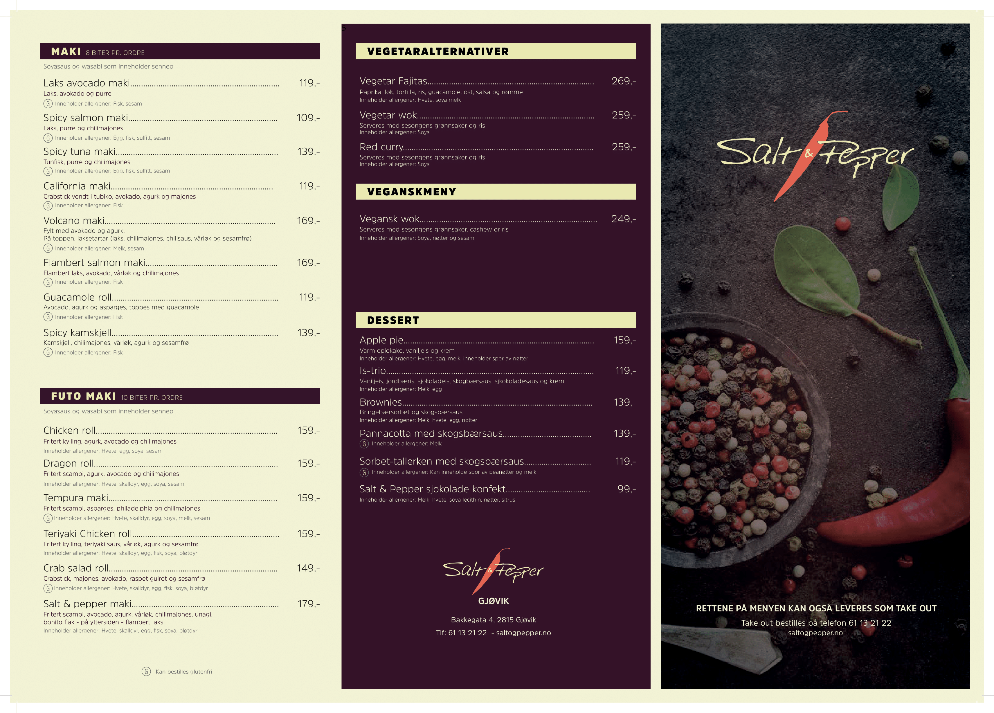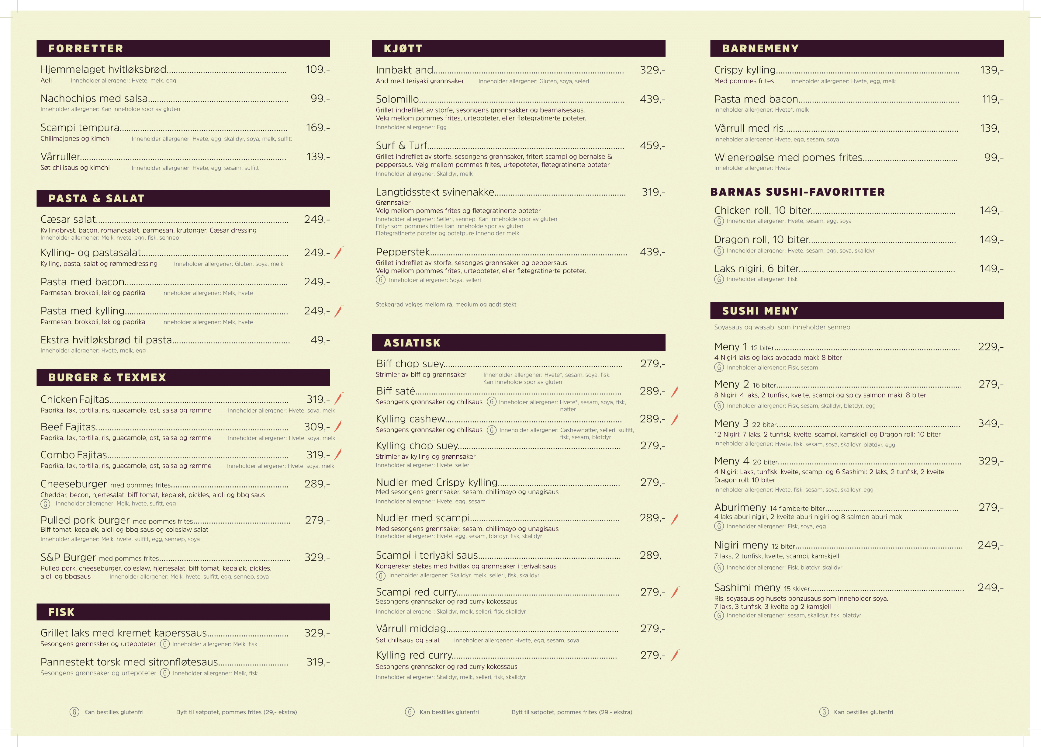 Nyt alt fra sushi til asiatiske retter til klassiske burgere og deilige biffer hos oss!